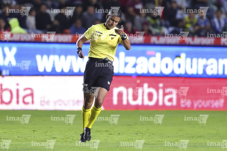 Torreón, Coahuila, 22 de marzo de 2026. Yonatan Peinado Aguirre, árbitro central, durante el partido correspondiente a la jornada 12 del torneo Clausura 2026 de la Liga BBVA MX, entre los Guerreros de Santos Laguna y el Club Puebla, realizado en el estadio Corona. Foto: Imago7/ Erick Saavedra