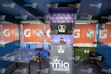 Puebla, Puebla, 3 de abril de 2026. Cabina del VAR, durante el partido correspondiente a la jornada 13 del torneo Clausura 2026 de la Liga BBVA MX, entre el Club Puebla y los Bravos de FC Juárez, realizado en el estadio Cuauhtémoc. Foto: Imago7/Mireya Novo