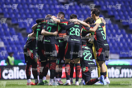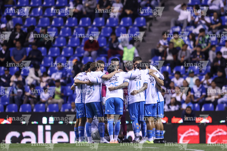 Puebla, Puebla, 3 de abril de 2026. Jugadores del Puebla durante el partido correspondiente a la jornada 13 del torneo Clausura 2026 de la Liga BBVA MX, entre el Club Puebla y los Bravos de FC Juárez, realizado en el estadio Cuauhtémoc. Foto: Imago7/ Diego Alducin