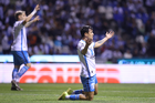 Puebla, Puebla, 3 de abril de 2026. Iker Moreno en festejo de gol, durante el partido correspondiente a la jornada 13 del torneo Clausura 2026 de la Liga BBVA MX, entre el Club Puebla y los Bravos de FC Juárez, realizado en el estadio Cuauhtémoc. Foto: Imago7/ Diego Alducin