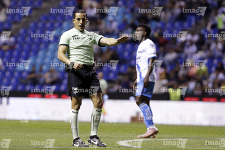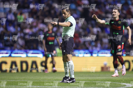 Puebla, Puebla, 3 de abril de 2026. Mario Terrazas Chávez, árbitro central, durante el partido correspondiente a la jornada 13 del torneo Clausura 2026 de la Liga BBVA MX, entre el Club Puebla y los Bravos de FC Juárez, realizado en el estadio Cuauhtémoc. Foto: Imago7/ Diego Alducin