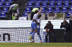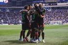 Puebla, Puebla, 3 de abril de 2026. Jugadores de FC Juárez en festejo de gol, durante el partido correspondiente a la jornada 13 del torneo Clausura 2026 de la Liga BBVA MX, entre el Club Puebla y los Bravos de FC Juárez, realizado en el estadio Cuauhtémoc. Foto: Imago7/ Diego Alducin