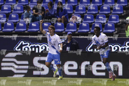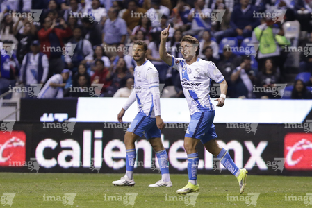 Puebla, Puebla, 3 de abril de 2026. Ricardo Gutiérrez en festejo, durante el partido correspondiente a la jornada 13 del torneo Clausura 2026 de la Liga BBVA MX, entre el Club Puebla y los Bravos de FC Juárez, realizado en el estadio Cuauhtémoc. Foto: Imago7/ Diego Alducin
