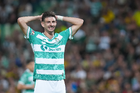 Torreón, Coahuila, 4 de abril de 2026. Alejandro Zendejas en lamento, durante el partido correspondiente a la jornada 13 del torneo Clausura 2026 de la Liga BBVA MX, entre los Guerreros de Santos Laguna y las Águilas del América, los Guerreros de Santos Laguna y las Águilas del América, realizado en el estadio Corona. Foto: Imago7/ Erick Saavedra