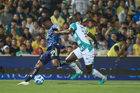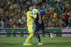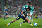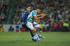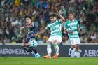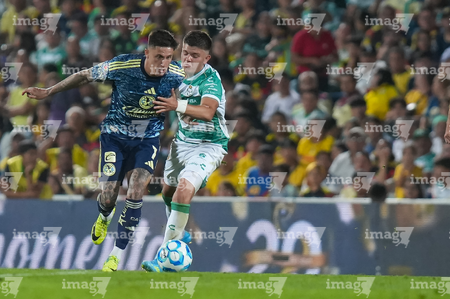Torreón, Coahuila, 4 de abril de 2026. Brian Rodríguez y Tahiel Jiménez, durante el partido correspondiente a la jornada 13 del torneo Clausura 2026 de la Liga BBVA MX, entre los Guerreros de Santos Laguna y las Águilas del América, los Guerreros de Santos Laguna y las Águilas del América, realizado en el estadio Corona. Foto: Imago7/ Erick Saavedra