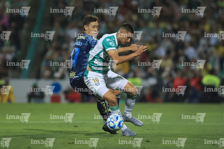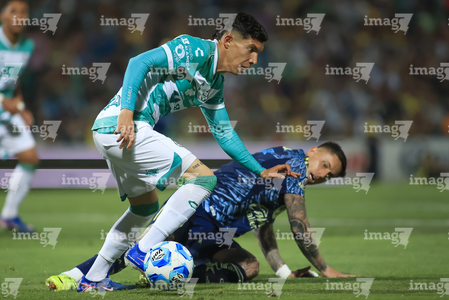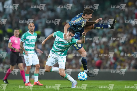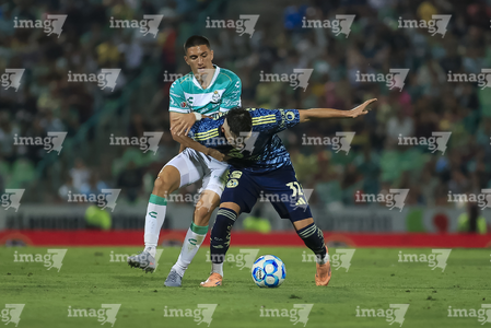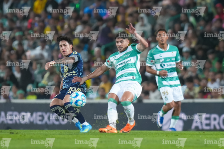 Torreón, Coahuila, 4 de abril de 2026. Ezequiel Bullaude y Miguel Vázquez, durante el partido correspondiente a la jornada 13 del torneo Clausura 2026 de la Liga BBVA MX, entre los Guerreros de Santos Laguna y las Águilas del América, los Guerreros de Santos Laguna y las Águilas del América, realizado en el estadio Corona. Foto: Imago7/ Saul Perales
