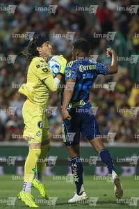 Torreón, Coahuila, 4 de abril de 2026. Carlos Acevedo y José Zuñiga, durante el partido correspondiente a la jornada 13 del torneo Clausura 2026 de la Liga BBVA MX, entre los Guerreros de Santos Laguna y las Águilas del América, los Guerreros de Santos Laguna y las Águilas del América, realizado en el estadio Corona. Foto: Imago7/ Saul Perales