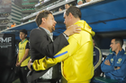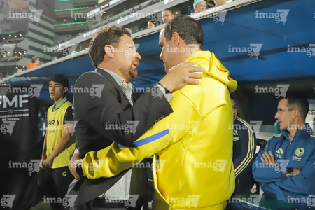 Torreón, Coahuila, 4 de abril de 2026. Omar Tapia, director técnico y Andre Jardine, director técnico, durante el partido correspondiente a la jornada 13 del torneo Clausura 2026 de la Liga BBVA MX, entre los Guerreros de Santos Laguna y las Águilas del América, los Guerreros de Santos Laguna y las Águilas del América, realizado en el estadio Corona. Foto: Imago7/ Saul Perales