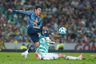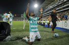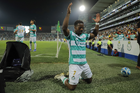 Torreón, Coahuila, 4 de abril de 2026. Carlos Acevedo en festejo durante el partido correspondiente a la jornada 13 del torneo Clausura 2026 de la Liga BBVA MX, entre los Guerreros de Santos Laguna y las Águilas del América, los Guerreros de Santos Laguna y las Águilas del América, realizado en el estadio Corona. Foto: Imago7/ Erick Saavedra