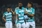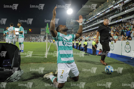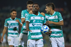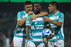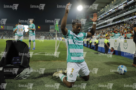 Torreón, Coahuila, 4 de abril de 2026. Cristian Dajome en festejo de gol, durante el partido correspondiente a la jornada 13 del torneo Clausura 2026 de la Liga BBVA MX, entre los Guerreros de Santos Laguna y las Águilas del América, los Guerreros de Santos Laguna y las Águilas del América, realizado en el estadio Corona. Foto: Imago7/ Saul Perales
