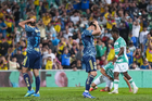 Torreón, Coahuila, 4 de abril de 2026. Jugadores del Club América en lamento, durante el partido correspondiente a la jornada 13 del torneo Clausura 2026 de la Liga BBVA MX, entre los Guerreros de Santos Laguna y las Águilas del América, los Guerreros de Santos Laguna y las Águilas del América, realizado en el estadio Corona. Foto: Imago7/ Erick Saavedra
