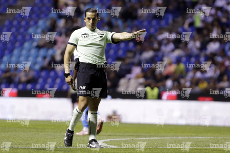 Puebla, Puebla, 3 de abril de 2026. Mario Terrazas Chávez, árbitro central, durante el partido correspondiente a la jornada 13 del torneo Clausura 2026 de la Liga BBVA MX, entre el Club Puebla y los Bravos de FC Juárez, realizado en el estadio Cuauhtémoc. Foto: Imago7/ Diego Alducin