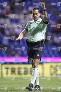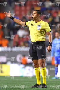 Puebla, Puebla, 4 de abril de 2026. Víctor Alfonso Cáceres, árbitro central, durante el partido correspondiente a la jornada 13 del torneo Clausura 2026 de la Liga BBVA MX, entre la Máquina Celeste del Cruz Azul y los Tuzos del Pachuca, realizado en el estadio Cuauhtémoc. Foto: Imago7/Mireya Novo