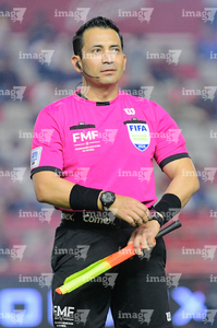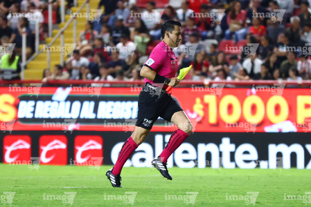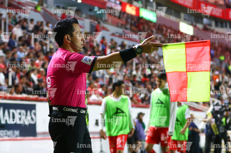 Aguascalientes, Aguascalientes, 3 de abril de 2026. Marco Antonio Bisguerra, árbitro asistente, durante el partido correspondiente a la jornada 13 del torneo Clausura 2026 de la Liga BBVA MX, entre los Rayos del Necaxa y los Cañoneros del Mazatlán FC, realizado en el estadio Victoria. Foto: Imago7/ Pablo Ramírez