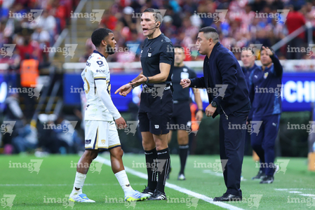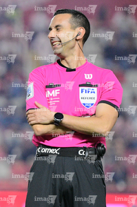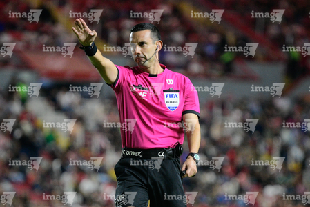 Zapopan, Jalisco, 5 de abril de 2026. Ismael López, árbitro central, durante el partido correspondiente a la jornada 13 del torneo Clausura 2026 de la Liga BBVA MX, entre las Chivas Rayadas del Guadalajara y los Pumas de la UNAM, realizado en el estadio Akron. Foto: Imago7/ Juan Carlos Cubeyro.