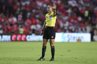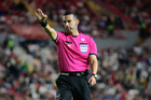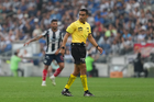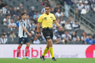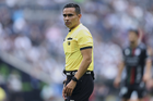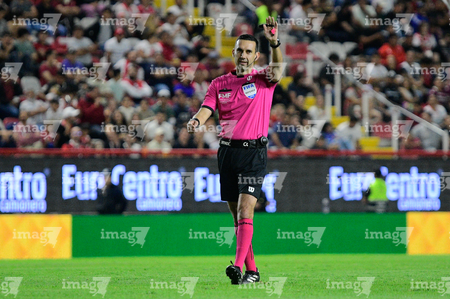 Aguascalientes, Aguascalientes, 3 de abril de 2026. César Arturo Ramos, árbitro central, durante el partido correspondiente a la jornada 13 del torneo Clausura 2026 de la Liga BBVA MX, entre los Rayos del Necaxa y los Cañoneros del Mazatlán FC, realizado en el estadio Victoria. Foto: Imago7/ Pablo Ramírez
