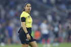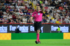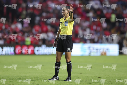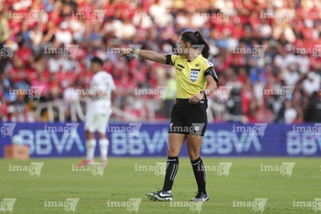 Querétaro, Querétaro, 4 de abril de 2026. Karen Hernández Andrade, árbitra central, durante el partido correspondiente a la jornada 13 del torneo Clausura 2026 de la Liga BBVA MX, entre los Gallos Blancos del Querétaro y los Diablos Rojos del Toluca, realizado en el estadio La Corregidora. Foto: Imago7/ Rafael Vadillo