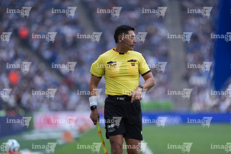 Guadalupe, Nuevo León, 4 de abril de 2026. Jesús Lorenzo Soto, árbitro asistente, durante el partido correspondiente a la jornada 13 del torneo Clausura 2026 de la Liga BBVA MX, entre los Rayados del Monterrey y el Atlético San Luis, realizado en el estadio BBVA. Foto: Imago7/Andrea Jiménez