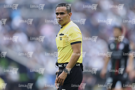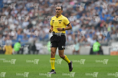 Guadalupe, Nuevo León, 4 de abril de 2026. Jesús Lorenzo Soto, árbitro central, durante el partido correspondiente a la jornada 13 del torneo Clausura 2026 de la Liga BBVA MX, entre los Rayados del Monterrey y el Atlético San Luis, realizado en el estadio BBVA. Foto: Imago7/ Ricardo A. Rodríguez