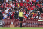 Aguascalientes, Aguascalientes, 3 de abril de 2026. Alberto Morín Méndez, árbitro asistente, durante el partido correspondiente a la jornada 13 del torneo Clausura 2026 de la Liga BBVA MX, entre los Rayos del Necaxa y los Cañoneros del Mazatlán FC, realizado en el estadio Victoria. Foto: Imago7/ Pablo Ramírez