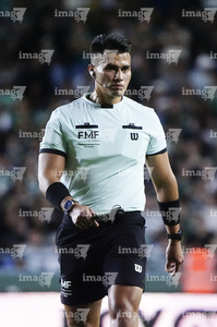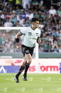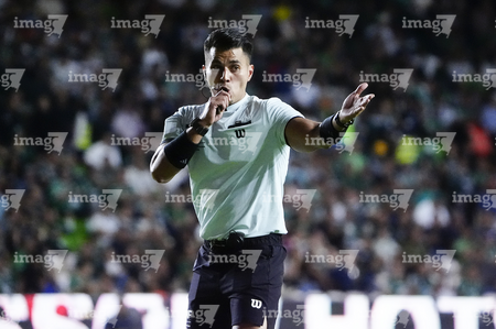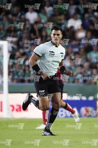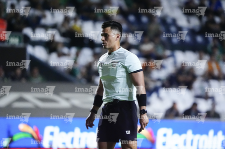León, Guanajuato, 4 de abril de 2026. Leonardo Javier Castillo, árbitro central, durante el partido correspondiente a la jornada 13 del torneo Clausura 2026 de la Liga BBVA MX, entre los Esmeraldas del León y los Rojinegros del Atlas, realizado en el estadio León. Foto: Imago7/Sebastian Laureano Miranda