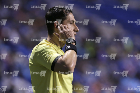 Puebla, Puebla, 3 de abril de 2026. Mario Terrazas Chávez, árbitro central, durante el partido correspondiente a la jornada 13 del torneo Clausura 2026 de la Liga BBVA MX, entre el Club Puebla y los Bravos de FC Juárez, realizado en el estadio Cuauhtémoc. Foto: Imago7/Mireya Novo
