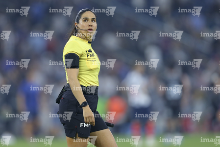 Guadalupe, Nuevo León, 4 de abril de 2026. Karen Díaz, árbitra asistente, durante el partido correspondiente a la jornada 13 del torneo Clausura 2026 de la Liga BBVA MX, entre los Rayados del Monterrey y el Atlético San Luis, realizado en el estadio BBVA. Foto: Imago7/