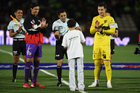 Ciudad Juárez, Chihuahua, 10 de abril de 2026. Jorge Abraham Camacho, árbitro central, durante el partido correspondiente a la jornada 14 del torneo Clausura 2026 de la Liga BBVA MX, entre los Bravos de FC Juárez y los Xolos de Tijuana, realizado en realizado en el estadio Olímpico Benito Juárez. Foto: Imago7/ José Zamora