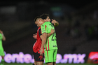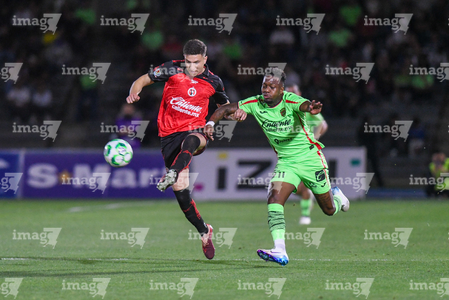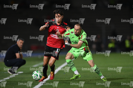 Ciudad Juárez, Chihuahua, 10 de abril de 2026. Rafael Fernández y Jose Luis Rodriguez, durante el partido correspondiente a la jornada 14 del torneo Clausura 2026 de la Liga BBVA MX, entre los Bravos de FC Juárez y los Xolos de Tijuana, realizado en realizado en el estadio Olímpico Benito Juárez. Foto: Imago7/ Alejandro Rodríguez