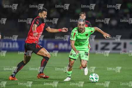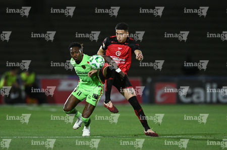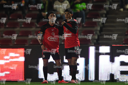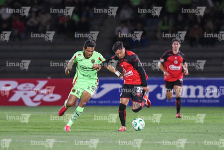 Ciudad Juárez, Chihuahua, 10 de abril de 2026. Ettson Ayón y Jesús Alejandro Gómez, durante el partido correspondiente a la jornada 14 del torneo Clausura 2026 de la Liga BBVA MX, entre los Bravos de FC Juárez y los Xolos de Tijuana, realizado en realizado en el estadio Olímpico Benito Juárez. Foto: Imago7/ José Zamora