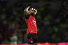 Ciudad Juárez, Chihuahua, 10 de abril de 2026. Jesús Murillo en lamento, durante el partido correspondiente a la jornada 14 del torneo Clausura 2026 de la Liga BBVA MX, entre los Bravos de FC Juárez y los Xolos de Tijuana, realizado en realizado en el estadio Olímpico Benito Juárez. Foto: Imago7/ Alejandro Rodríguez
