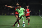 Ciudad Juárez, Chihuahua, 10 de abril de 2026. Frank Boya, durante el partido correspondiente a la jornada 14 del torneo Clausura 2026 de la Liga BBVA MX, entre los Bravos de FC Juárez y los Xolos de Tijuana, realizado en realizado en el estadio Olímpico Benito Juárez. Foto: Imago7/ Alejandro Rodríguez