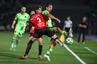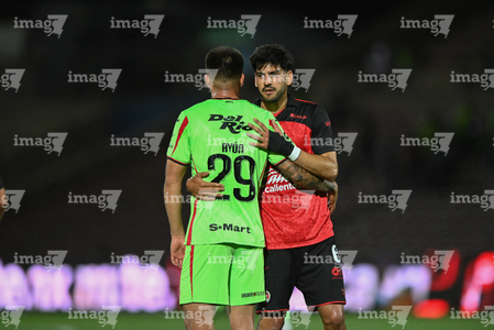 Ciudad Juárez, Chihuahua, 10 de abril de 2026. Rafael Fernández y Rodolfo Pizarro, durante el partido correspondiente a la jornada 14 del torneo Clausura 2026 de la Liga BBVA MX, entre los Bravos de FC Juárez y los Xolos de Tijuana, realizado en realizado en el estadio Olímpico Benito Juárez. Foto: Imago7/ Alejandro Rodríguez