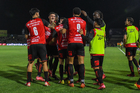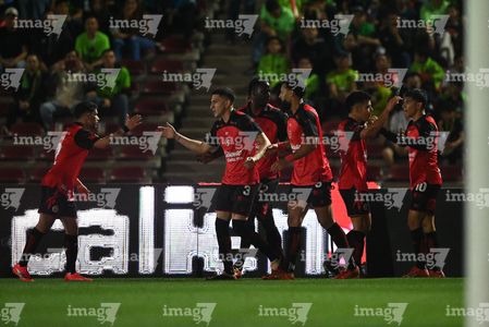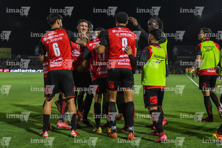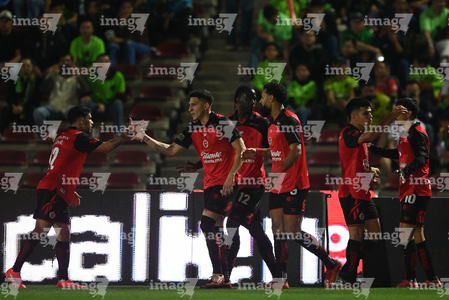 Ciudad Juárez, Chihuahua, 10 de abril de 2026. Jugadores de Xolos de Tijuana en festejo de gol, durante el partido correspondiente a la jornada 14 del torneo Clausura 2026 de la Liga BBVA MX, entre los Bravos de FC Juárez y los Xolos de Tijuana, realizado en realizado en el estadio Olímpico Benito Juárez. Foto: Imago7/ Alejandro Rodríguez