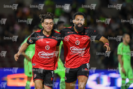 Ciudad Juárez, Chihuahua, 10 de abril de 2026. Iván Tona y Alejandro Mayorga, durante el partido correspondiente a la jornada 14 del torneo Clausura 2026 de la Liga BBVA MX, entre los Bravos de FC Juárez y los Xolos de Tijuana, realizado en realizado en el estadio Olímpico Benito Juárez. Foto: Imago7/ Alejandro Rodríguez
