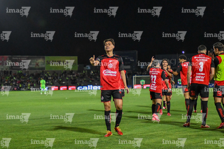 Ciudad Juárez, Chihuahua, 10 de abril de 2026. Kevin Castañeda en festejo de gol, durante el partido correspondiente a la jornada 14 del torneo Clausura 2026 de la Liga BBVA MX, entre los Bravos de FC Juárez y los Xolos de Tijuana, realizado en realizado en el estadio Olímpico Benito Juárez. Foto: Imago7/ José Zamora