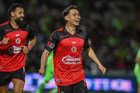 Ciudad Juárez, Chihuahua, 10 de abril de 2026. Ramiro Árciga en festejo de gol, durante el partido correspondiente a la jornada 14 del torneo Clausura 2026 de la Liga BBVA MX, entre los Bravos de FC Juárez y los Xolos de Tijuana, realizado en realizado en el estadio Olímpico Benito Juárez. Foto: Imago7/ Alejandro Rodríguez