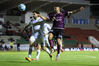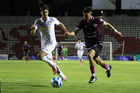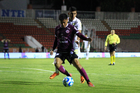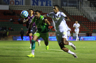 Zacatecas, Zacatecas, 27 de febrero de 2026. Andrés Mendoza y Adolfo Domínguez, durante el partido correspondiente a la jornada 8 del torneo Clausura 2026 de la Liga BBVA Expansión MX, entre los Mineros de Zacatecas y los Venados de Mérida, realizado en el estadio Carlos Vega Villalba. Foto: Imago7/ Raúl Martínez