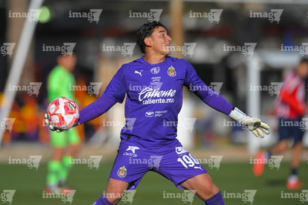 Ciudad Juárez, Chihuahua, 13 de enero de 2026. Ronaldo Salazar, durante el partido correspondiente a la jornada 2 del torneo clausura 2026 de la Liga BBVA MX categoría Sub21, entre los Bravos de FC Juárez y las Chivas Rayadas del Guadalajara, realizado en realizado en el Instituto Tecnológico de Ciudad Juárez. Foto: Imago7/ José Zamora
