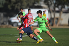 Ciudad Juárez, Chihuahua, 13 de enero de 2026. Diego Latorre y Pablo Villanueva, durante el partido correspondiente a la jornada 2 del torneo clausura 2026 de la Liga BBVA MX categoría Sub21, entre los Bravos de FC Juárez y las Chivas Rayadas del Guadalajara, realizado en realizado en el Instituto Tecnológico de Ciudad Juárez. Foto: Imago7/ José Zamora