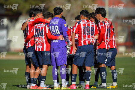 Ciudad Juárez, Chihuahua, 13 de enero de 2026. Jugadores de Chivas, durante el partido correspondiente a la jornada 2 del torneo clausura 2026 de la Liga BBVA MX categoría Sub21, entre los Bravos de FC Juárez y las Chivas Rayadas del Guadalajara, realizado en realizado en el Instituto Tecnológico de Ciudad Juárez. Foto: Imago7/ José Zamora