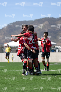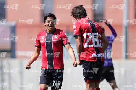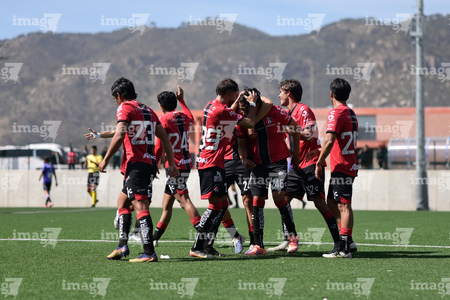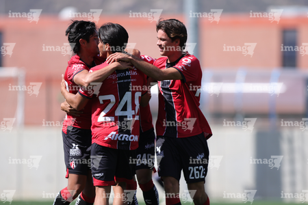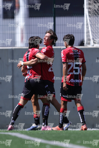 Guadalajara, Jalisco, 31 de enero 2026. Jugadores del Atlas en festejo de gol, durante el partido correspondiente a la jornada 4 del torneo Clausura 2026 de la Liga BBVA MX categoría Sub19, entre los Rojinegros del Atlas y los Cañoneros del Mazatlán, realizado en la Academia AGA. Foto: Imago7/ Cristian Hernández