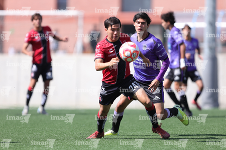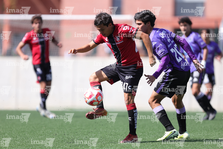 Guadalajara, Jalisco, 31 de enero 2026. Aldo Navarro (I), durante el partido correspondiente a la jornada 4 del torneo Clausura 2026 de la Liga BBVA MX categoría Sub19, entre los Rojinegros del Atlas y los Cañoneros del Mazatlán, realizado en la Academia AGA. Foto: Imago7/ Cristian Hernández