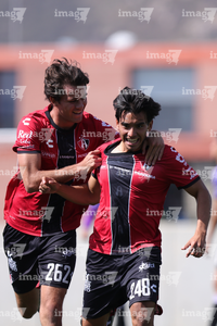 Guadalajara, Jalisco, 31 de enero 2026. Mariano Castañeda en festejo de gol, durante el partido correspondiente a la jornada 4 del torneo Clausura 2026 de la Liga BBVA MX categoría Sub19, entre los Rojinegros del Atlas y los Cañoneros del Mazatlán, realizado en la Academia AGA. Foto: Imago7/ Cristian Hernández