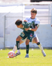 Querétaro, Querétaro, 07 de febrero 2026. Luis Venegas (I), durante el partido correspondiente a la jornada 5 del torneo Clausura 2026 de la Liga BBVA MX categoría Sub19, entre los Gallos Blancos del Querétaro y los Esmeraldas del León, realizado en el CEGAR. Foto: Imago7/