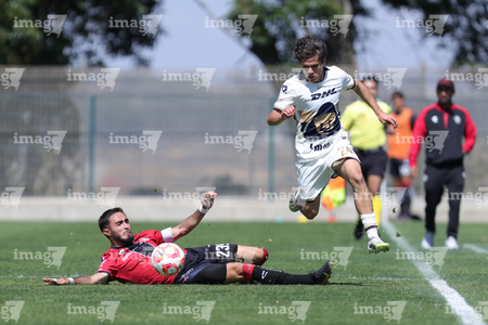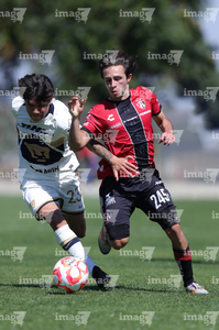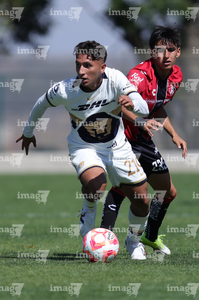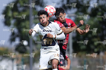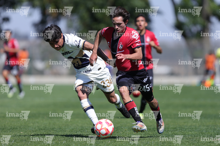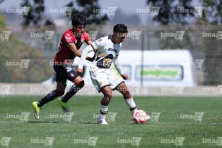 Guadalajara, Jalisco. 07 de febrero de 2026. Diego Laguna (I), durante el partido correspondiente a la jornada 5 del torneo Clausura 2026 de la Liga BBVA MX categoría Sub 19, entre los rojinegros del Atlas y los Pumas de la UNAM, realizado en la academia AGA. Foto/ Imago7/ Cristian Hernandez