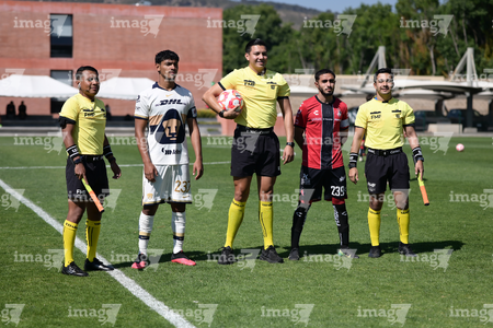 Guadalajara, Jalisco. 07 de febrero de 2026. Protocolo, durante el partido correspondiente a la jornada 5 del torneo Clausura 2026 de la Liga BBVA MX categoría Sub 19, entre los rojinegros del Atlas y los Pumas de la UNAM, realizado en la academia AGA. Foto/ Imago7/ Cristian Hernandez