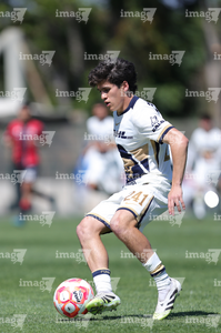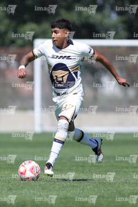 Guadalajara, Jalisco. 07 de febrero de 2026. Emiliano Hermida, durante el partido correspondiente a la jornada 5 del torneo Clausura 2026 de la Liga BBVA MX categoría Sub 19, entre los rojinegros del Atlas y los Pumas de la UNAM, realizado en la academia AGA. Foto/ Imago7/ Cristian Hernandez