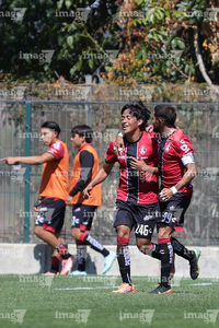 Guadalajara, Jalisco. 07 de febrero de 2026. Milton Esponda en festejo de gol, durante el partido correspondiente a la jornada 5 del torneo Clausura 2026 de la Liga BBVA MX categoría Sub 19, entre los rojinegros del Atlas y los Pumas de la UNAM, realizado en la academia AGA. Foto/ Imago7/ Cristian Hernandez