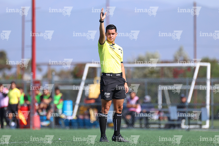 Tijuana, Baja California, 14 de febrero de 2026. Carlos Omar Cruz Busani, árbitro central, durante el partido correspondiente a la jornada 6 del torneo Clausura 2026 de la Liga BBVA MX categoría Sub17, entre los Xolos de Tijuana y los Rayados del Monterrey, realizado en el Centro de Iniciación Xoloitzcuintle. Foto: Imago7/ David Vega